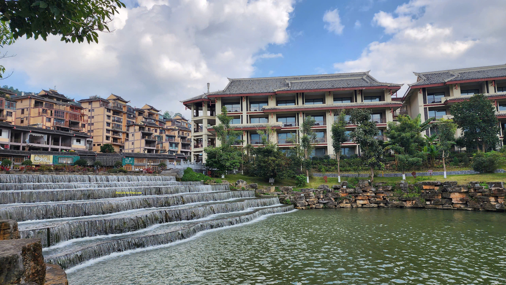 Triều Dương Lầu, tọa lạc ở trung tâm huyện, được hoàn thành vào năm 22 Hồng Vũ triều nhà Minh (năm 1389) đến nay đã hơn 600 năm, đó là một trong những biểu tượng chính trong lịch sử lâu đời của Kiến Thủy - thị trấn quan trọng ở miền nam tỉnh Vân Nam, là biểu tượng của một thị trấn quan trọng lâu đời ở biên giới Tổ quốc, được gọi tắt là "Tiểu Thiên An Môn" của Kiến Thủy (khoảng 30 phút), đi bộ đến Chu gia hoa viên - nằm ở giữa Phố Kiến Tân của Thành phố cổ Kiến Thủy, Vân Nam. Toàn bộ kiến trúc đều tinh xảo và trang nhã với các đường gờ và phào chỉ dốc, các thanh xà được chạm khắc. Sân - vườn – phòng – sảnh bố trí hợp lý, không gian cảnh quan có nhiều lớp và thay đổi không ngừng, hình thành quần thể kiến trúc “mê cung”.