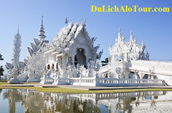 Đến Chiang Rai: Viếng chùa Wat Rong Khun hay còn gọi White temple vì toàn bộ ngôi chùa có một màu trắng nổi bật, độc đáo - Đối lập với những nét đen tối của Nhà Đen, Chùa Trắng Wat Rong Khun hiện ra một cách thanh thoát và nhẹ nhàng. Không ngoa khi nói rằng đây là ngôi chùa đẹp nhất được dựng xây trong thế kỉ qua. Hoàn toàn khác biệt với những ngôi chùa trăm tuổi khác ở Chiang Rai, toàn bộ chùa đều được khoác lên mình một màu trắng - màu sắc tôn vinh trí tuệ thuần khiết của Đức Phật. Hãy bước qua chiếc cầu Luân Hồi, các biểu tượng sinh, tử và kết thúc hành trình của mình với những triết lý cao đẹp được thể hiện qua bàn tay tài hoa của họa sĩ Chalarmchai Kositpipat lừng danh.